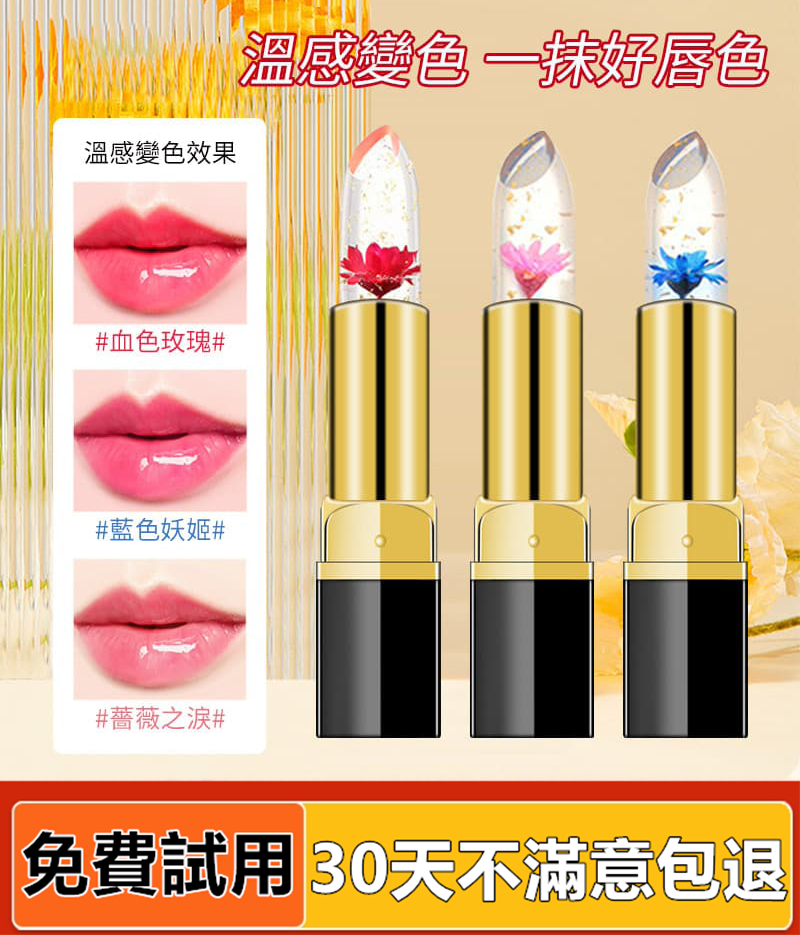 【2023秋冬爆款口紅 買一送二 每件僅需154】鮮花晶透變色口紅、不沾杯、保濕、滋潤補水!